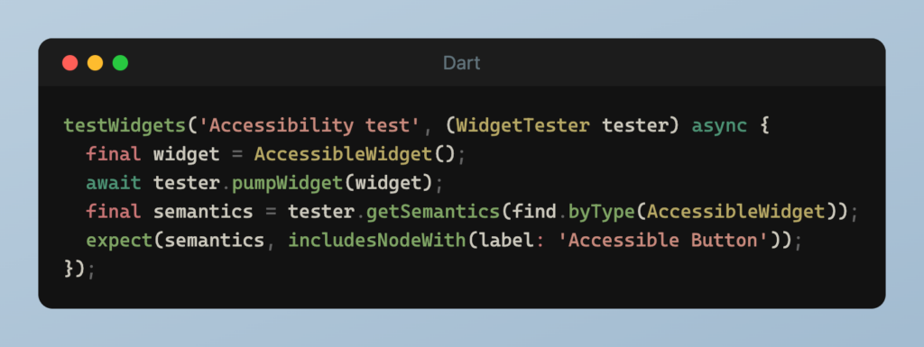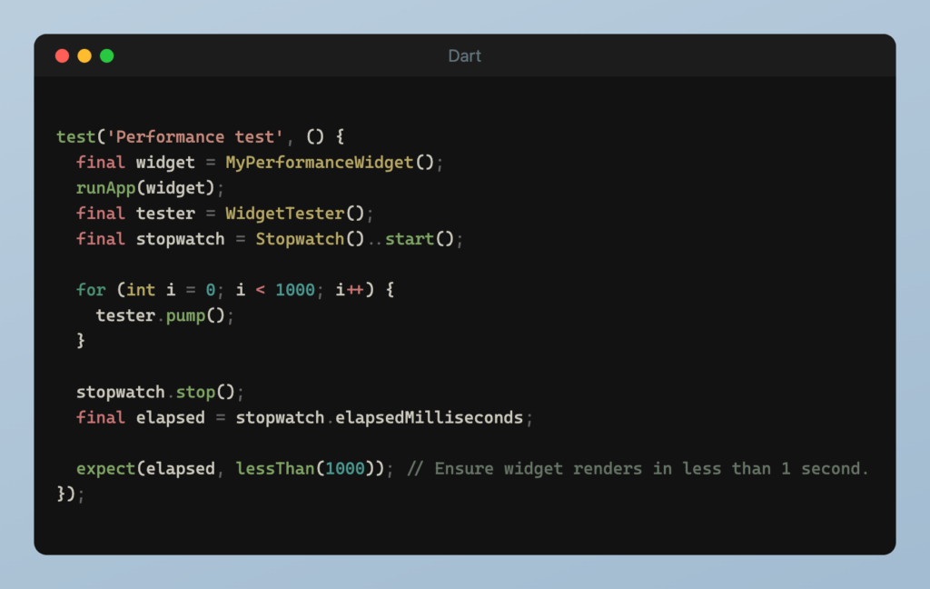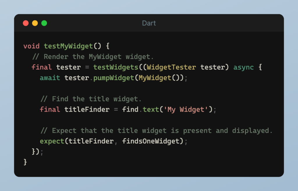 - Assert Expected State and Behavior: Include assertions in widget tests to confirm the expected state and behavior of the tested widget.