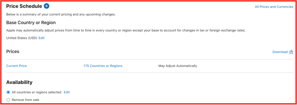 Price Schedule:- if the app should be paid app on the store then select any option from the below list if the app should only be available to a specific country then provide a list of countries