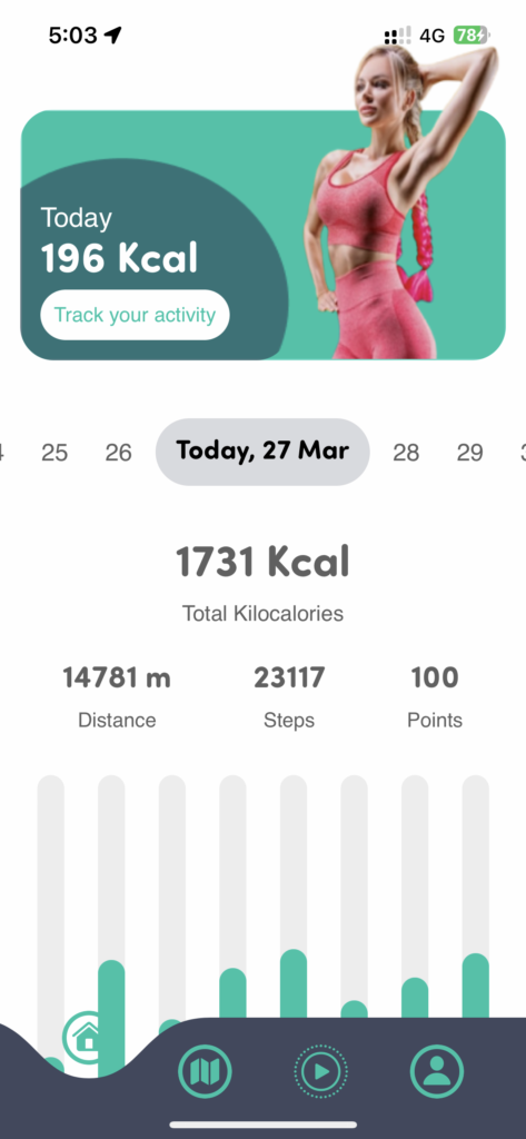 - User-friendly interface: Your app has a simple and intuitive interface that allows users to easily track their progress and view their data. The app displays key metrics such as steps taken, calories burned, and distance traveled in a clear and concise manner.