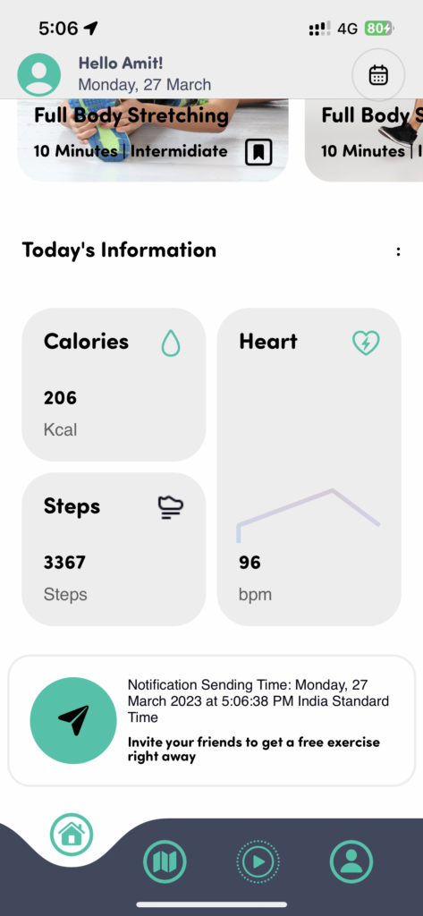 - Personalized recommendations: Your app provides personalized recommendations based on the user’s data and goals. For example, if a user wants to increase their step count, the app may suggest taking a walk during lunch or taking the stairs instead of the elevator.