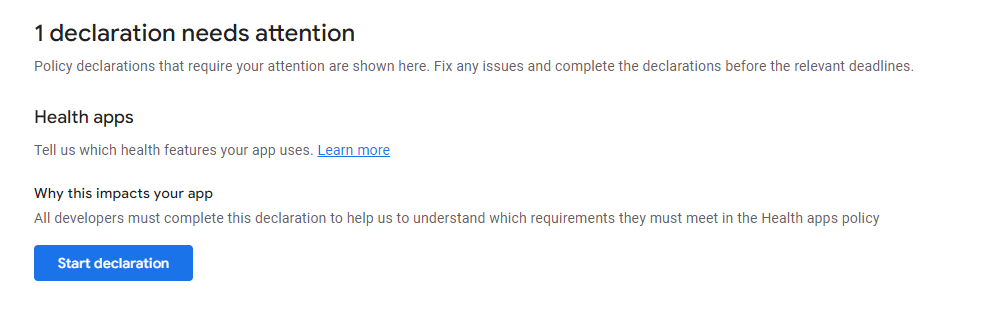 Health Connect permissions approval required in Play Console