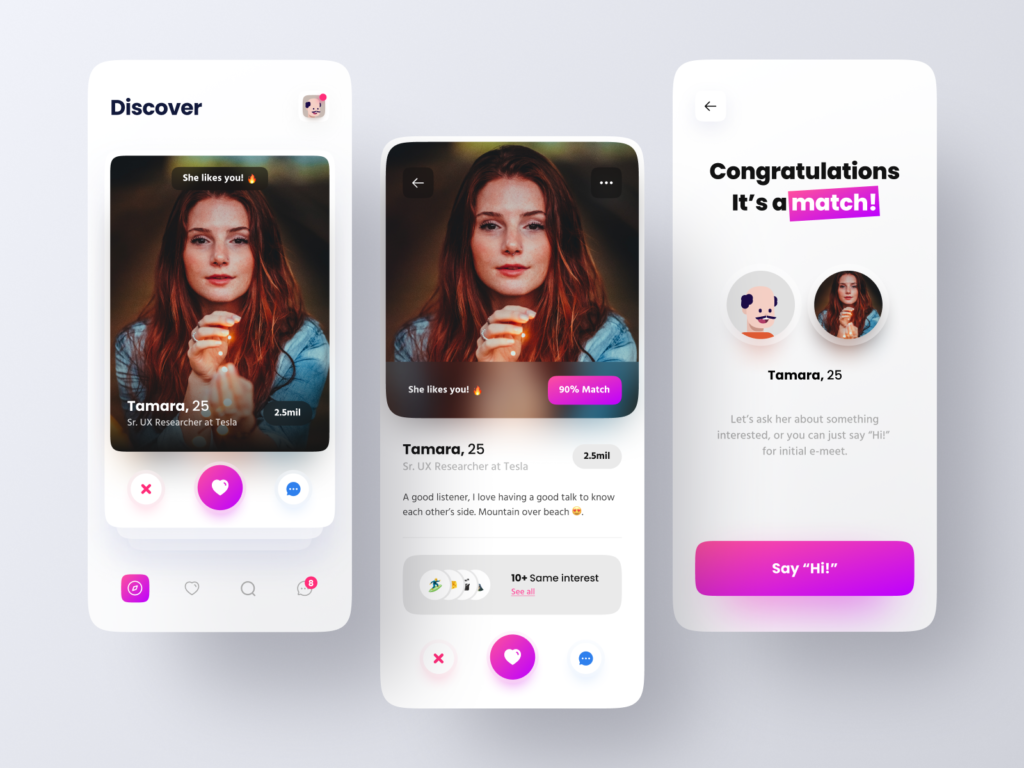 Dating apps will provide features such as swipe-based matching. Location-based match options and filtering for gender, interests & hobbies, and type of relationship sought.