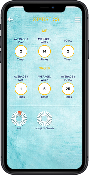 Users can see their daily and weekly statistics information regarding meditation. Users can follow up on their life goals by analyzing the statistics based on daily and weekly analysis. Users can compare and track their friend's statistics as well via the app.