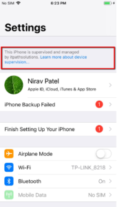 You can check your device is supervised or not by navigating to the device settings.