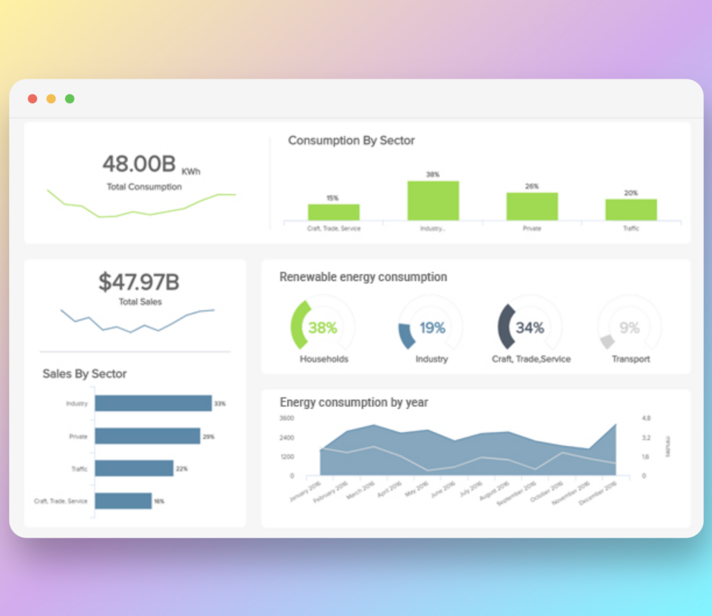 In the energy and utilities sector, Power BI dashboards play a critical role by tracking energy consumption patterns, evaluating metrics for renewable energy production, monitoring equipment and maintenance, conducting cost analysis for utilities, and ensuring regulatory compliance. These tools empower organisations to optimise resource utilisation, improve sustainability efforts, enhance operational efficiency, and meet industry standards effectively.