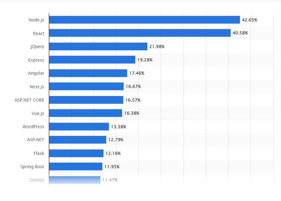 React has quickly become one of the most popular frameworks for building fast, scalable and modern front-end applications. As per the study to Statista, with 40.58% of respondents reporting that they use it.